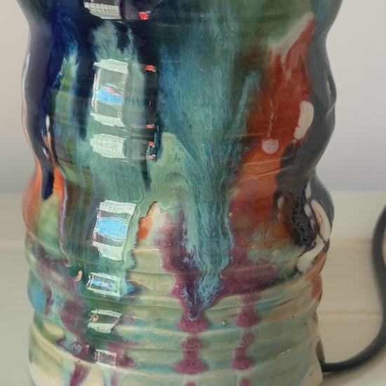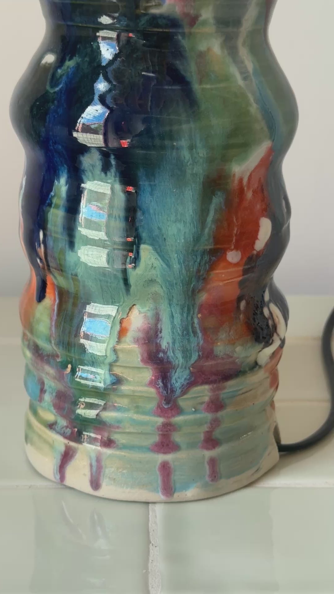 The lamp base is ceramic and has been hand crafted and painted in Melbourne, Australia.