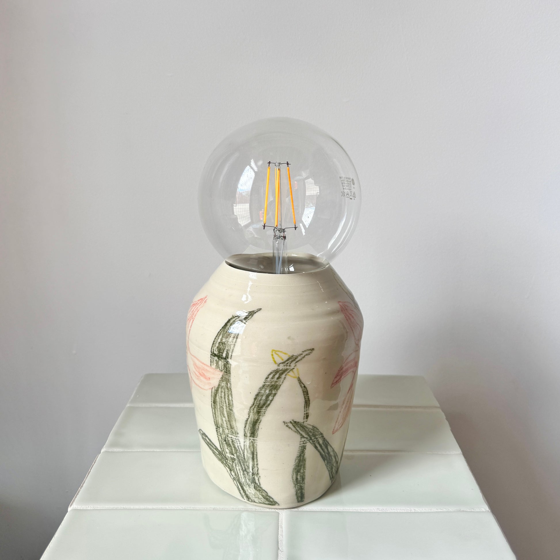 The lamp base is ceramic and has been hand crafted and painted in Melbourne, Australia.