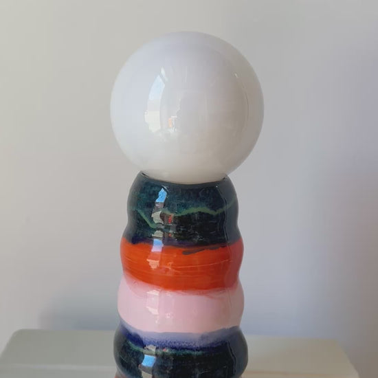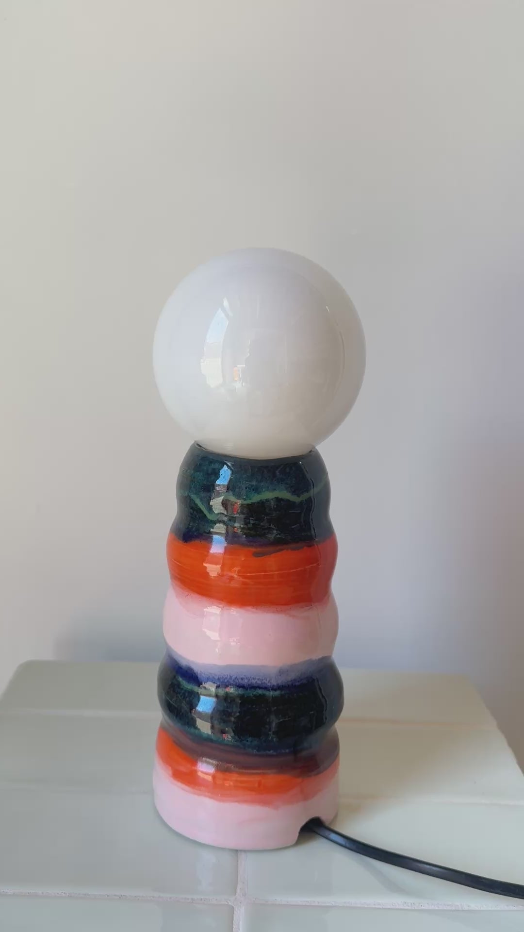 The lamp base is ceramic and has been hand crafted and painted in Melbourne, Australia.